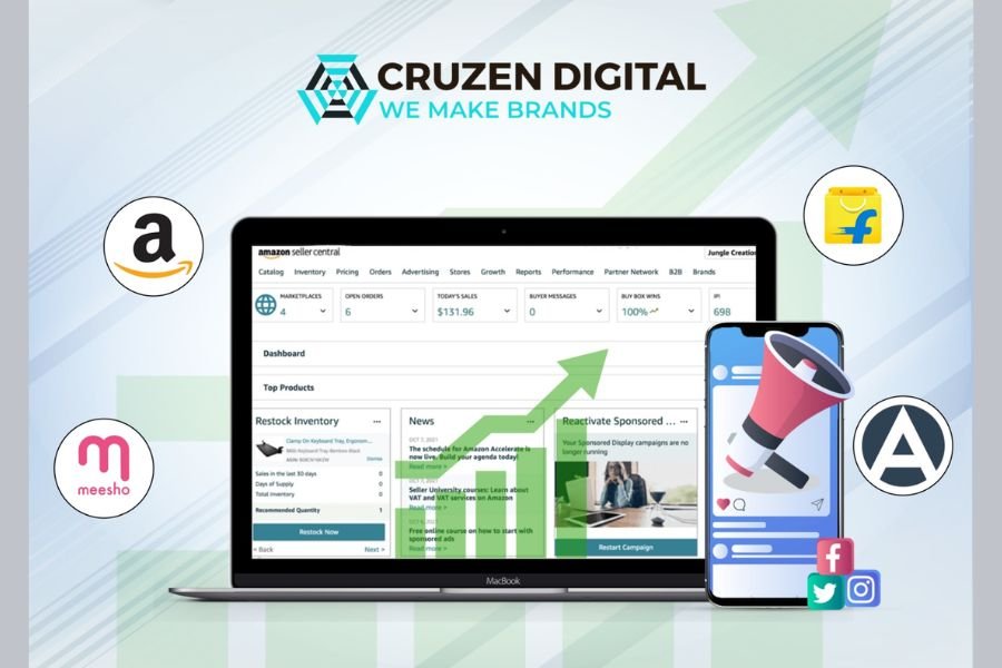 Cruzen Digital is an authorised partner of Amazon, Flipkart, Myntra, Meesho, Shopclues, & brands alike. The company is on a mission to help individuals grow and build successful businesses by harnessing the power of proven digital marketing and organic growth strategies for E-commerce solutions. Cruzen Digital is India’s leading digital marketing company. The company is committed to providing clients with the best possible experience. The company features trustworthy, reliable, and world-class solutions for various industries.