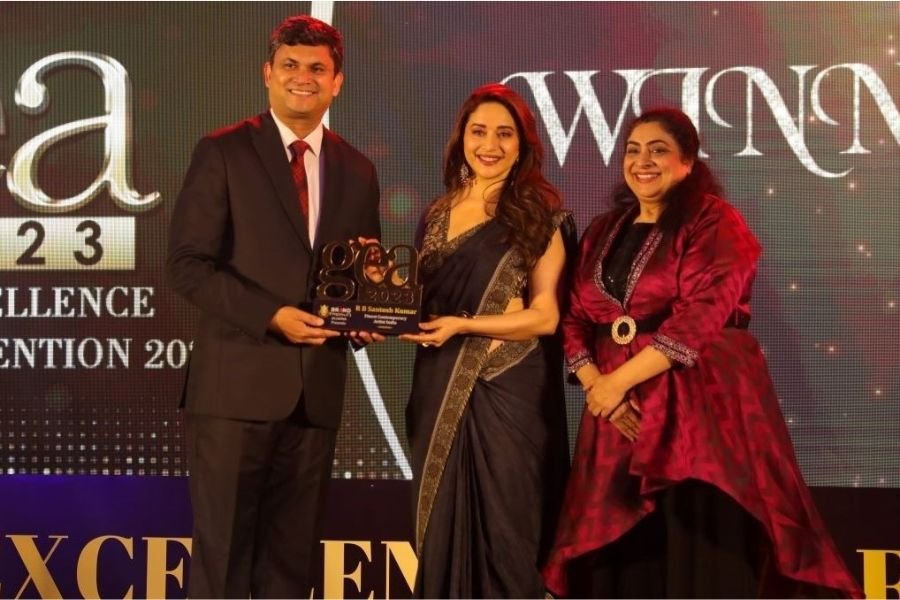 New Delhi (India), June 14: Artist R B Santosh Kumar recently won the Finest Contemporary Artist in India Award at an event in Mumbai. The award was presented by Bollywood actress Ms Madhuri Dixit. Santosh holds 15 Solo exhibitions and 15 International group shows to his credit. He works with oil, Acrylic and watercolor mediums in his artistic creations. He derives his inspiration from Mother Nature, a fact that he attributes to his childhood memories spent in the beautiful state of Kerala in Southern India. He believes in the human form, its myriad postures and the variety of expressions and translates them into his art with the grace of an artist and the authenticity of a sensitive human being.