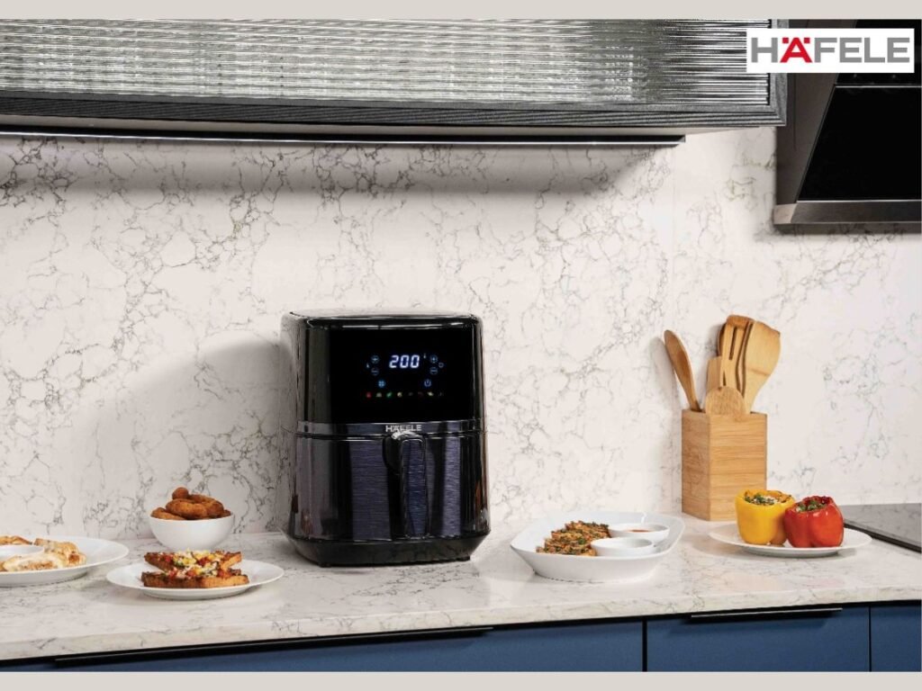 Hafele’s NOIL Lite Air Fryer offers a healthier alternative to cooking food, in a compact package. Now fulfil your deep-fried food cravings without any guilt! True to its name, this air fryer prepares food with little to NO-OIL. The smart Rapid Air Technology intuitively adjusts the temperature so that the food cooked is crisp on the outside and tender on the inside, all while using 90% less fat. What’s more, with this air fryer you can bake, grill, roast, and even reheat food as per your preference! With an attractive design, touch panel with 8 pre-set programmes and an aerodynamically designed non-stick fry basket, NOIL Lite guarantees a reimagined cooking experience: one where taste equals health.