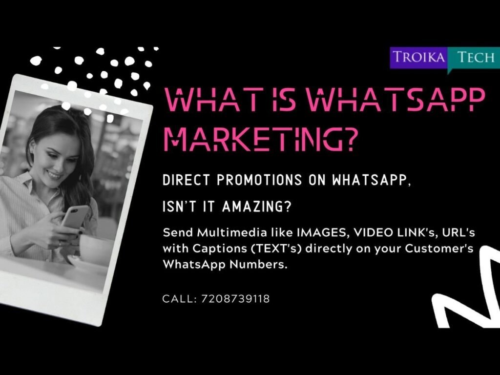 For more information on how Troika Tech Services can help your business succeed with WhatsApp Marketing, visit www.troikatech.in or contact us at info@troikatech.in / 7208739118 / 9529945588.